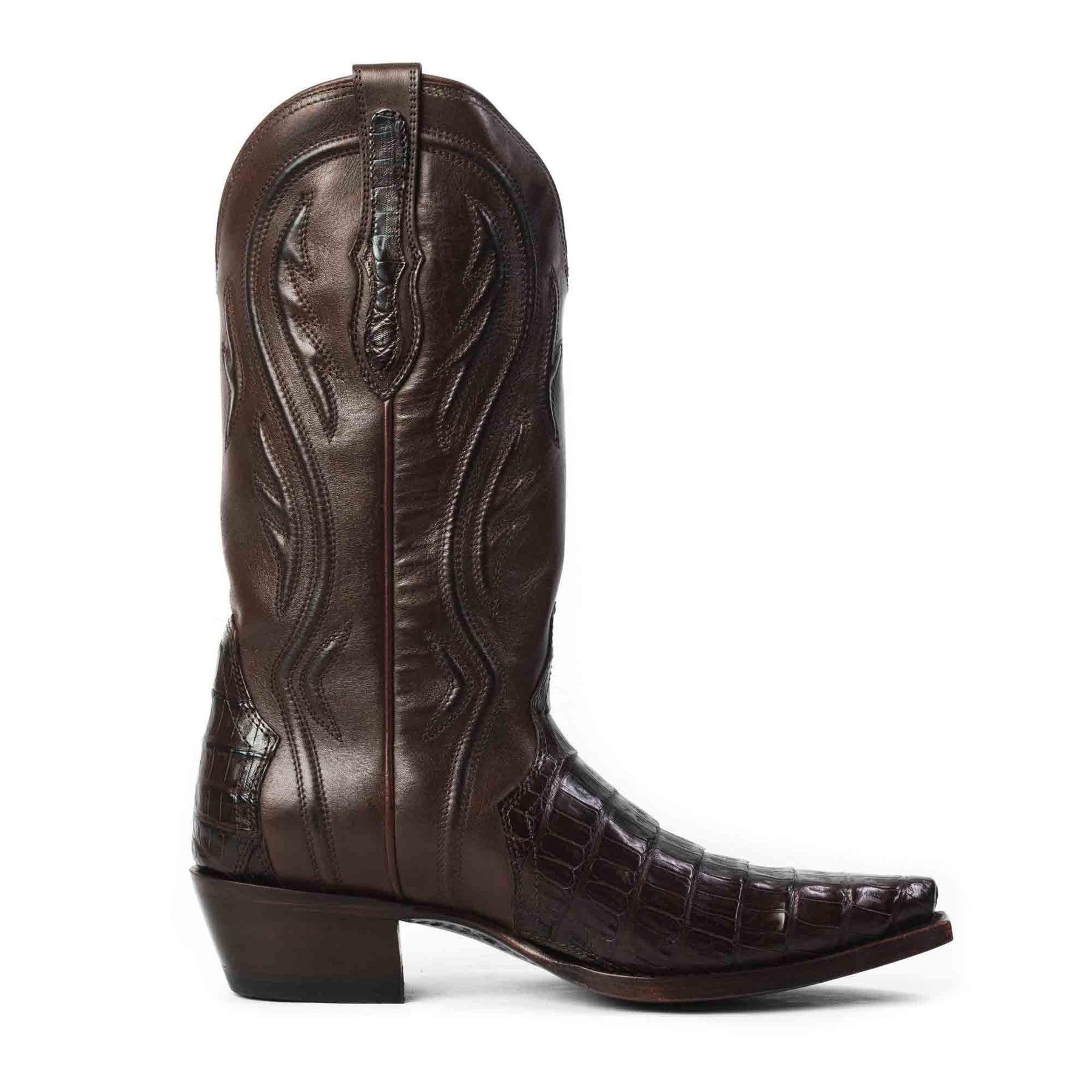 RUJO's 100% genuine exotic hides set a new standard for cowgirl boot design. Every single one of RUJO's Caiman hides undergoes a through examination before being selected for the best match of color and pattern. This can see this extra effort when you look at The Cindy.