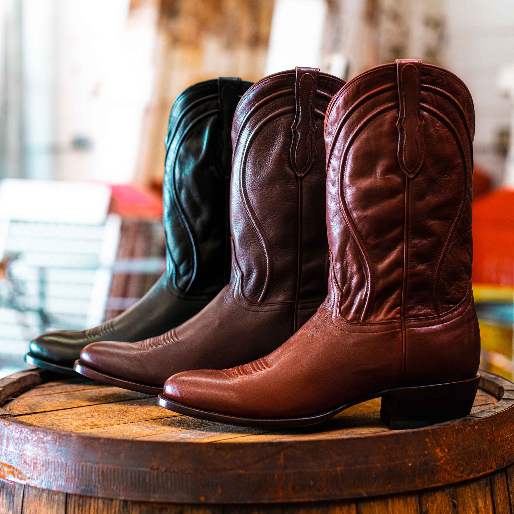 6.0 lbThe Duke is true cowboy boot royalty. Made entirely from our stunning Caravan Calfskin, The Duke has a classic R-Toe and an elegantly pitched heel, which come together to form the quintessential profile of a calfskin cowboy boot. Get yours today.
