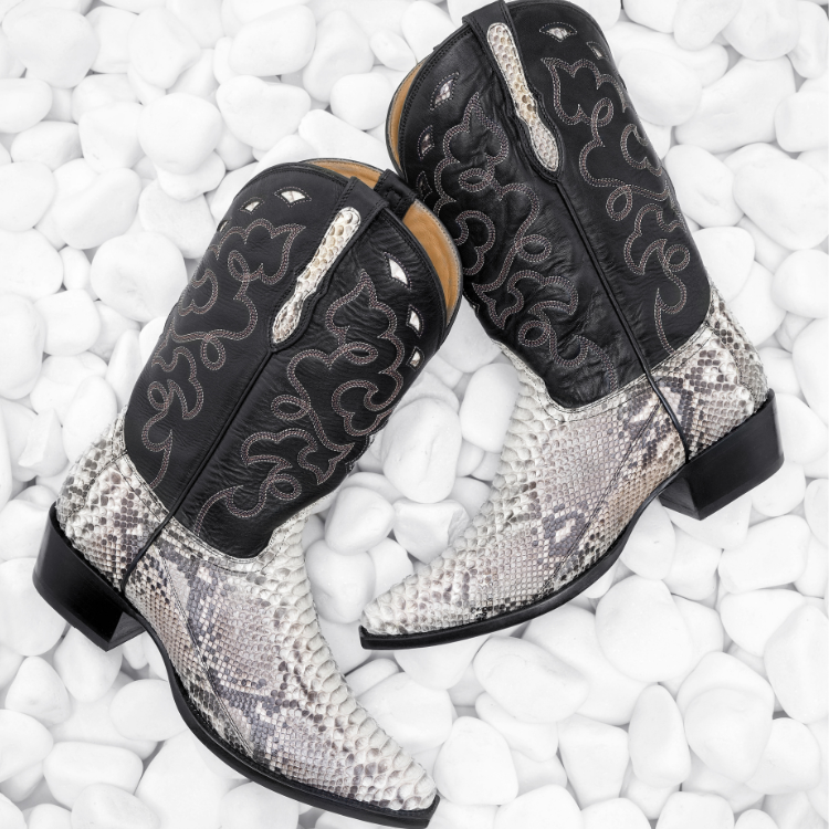 6.0 lbTake a walk on the wild side with the latest edition of our exotic collection. Mother Nature is a great designer and it shows oh so well in this snip-toe Python winner. Handsome shades of tobacco are wrapped tip to toe in this handsomely attractive presentation.