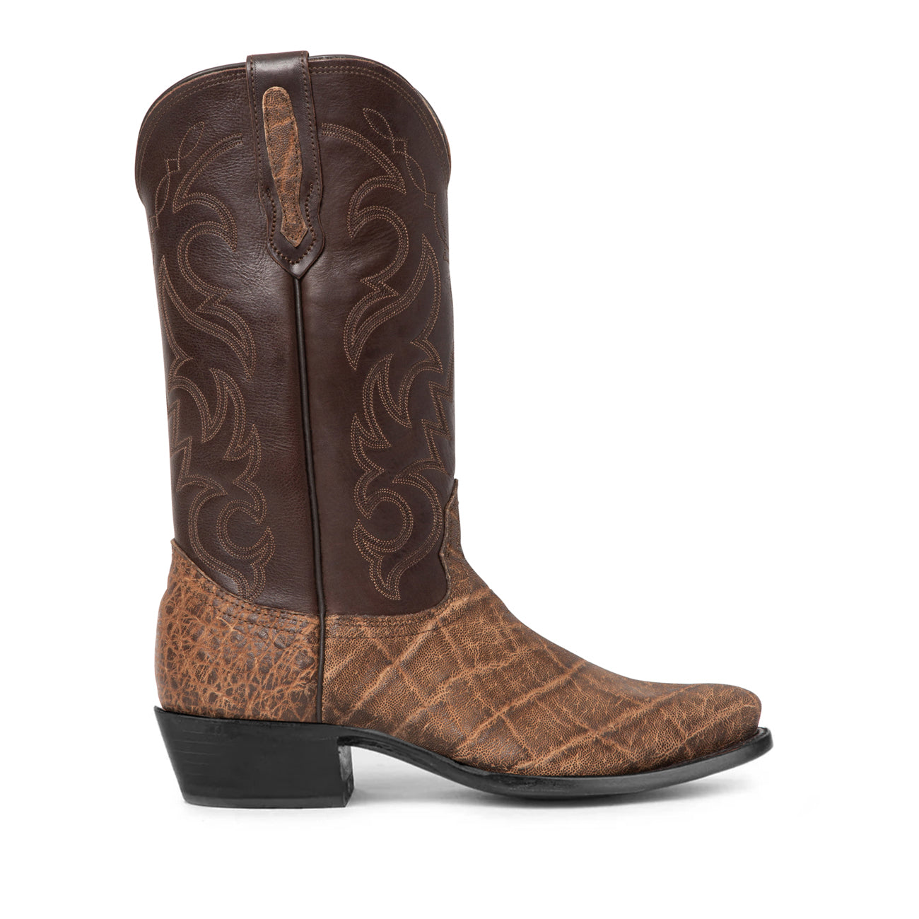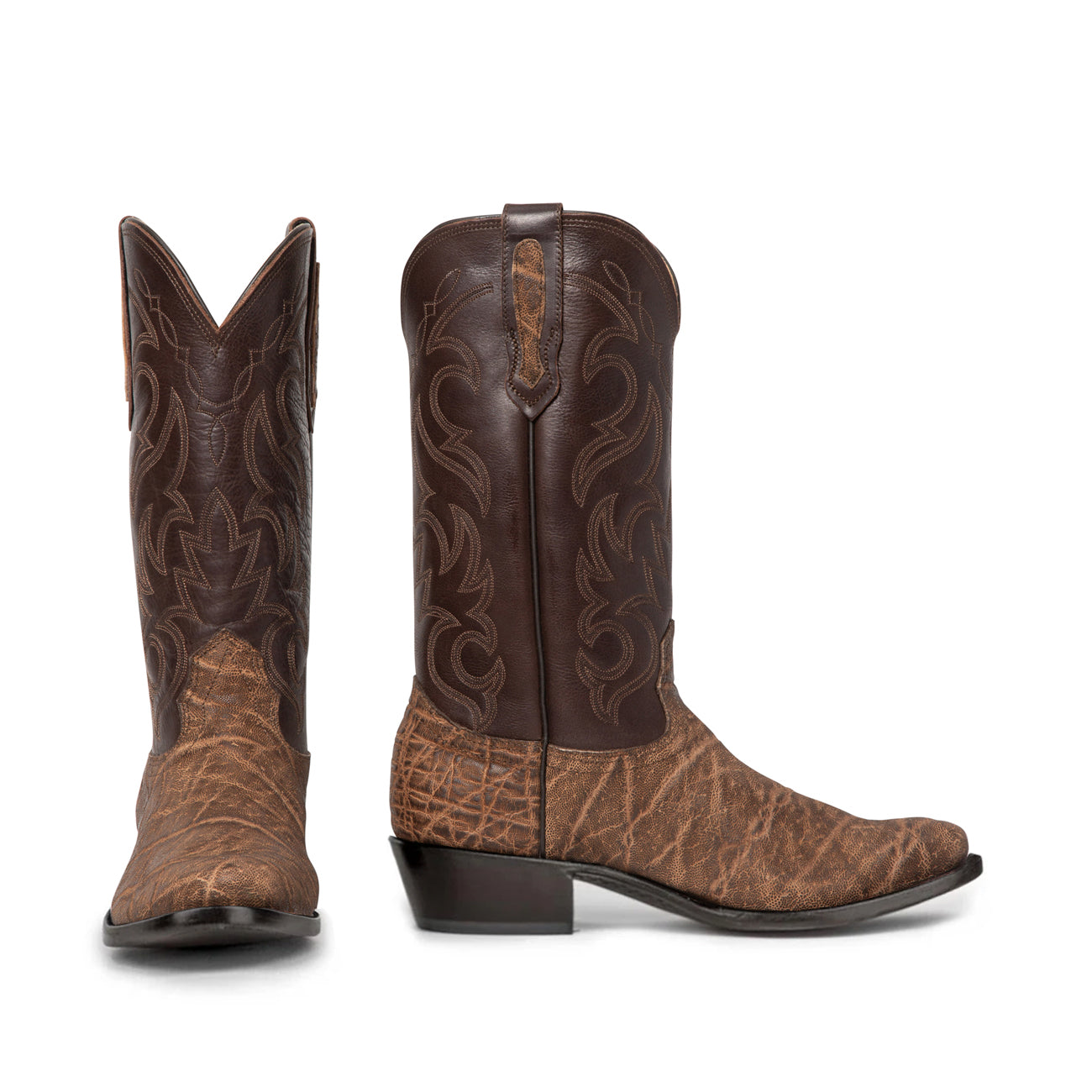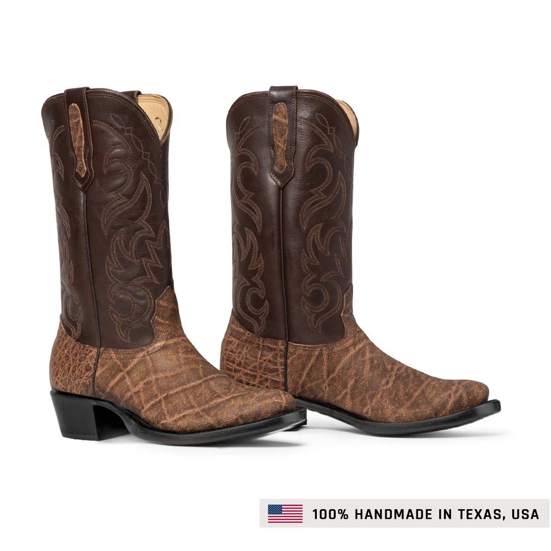 6.0 lbThe Luis Elephant Boots are built for those who demand strength, character, and unmistakable Western style. Handmade in Texas and crafted from genuine elephant hide, these boots offer exceptional durability and a richly textured look that only gets better with time. The bold shaft stitching adds depth and contrast, giving the boot a classic profile with rugged appeal. A punchy toe and sturdy leather sole deliver all-day comfort and stability, whether you’re putting in long hours or stepping out for the night. Made for men who walk with confidence and live without compromise, the Luis is Western craftsmanship at its strongest.