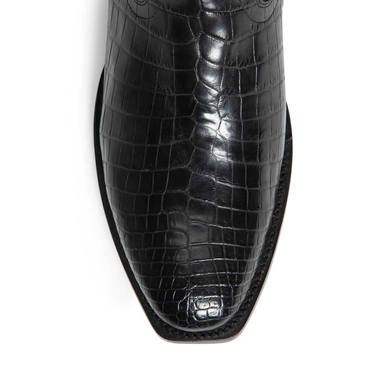 The Leo is a standout Western boot crafted from the richest Nile Crocodile leather, offering a striking blend of bold exotic texture and unmistakable sophistication. Its semi-gloss finish and classic silhouette make The Leo a refined statement piece from every angle. Premium cowhide quarters form the shaft, elevated with an elegant, detailed cording pattern that adds depth and artistry to its design. Matching Nile Crocodile pull straps complete the look, creating a seamless, luxurious profile that boot lovers will instantly appreciate. Built with a single-stitched welt and a durable leather outsole, The Leo delivers exceptional craftsmanship, longevity, and true Western character. From its premium materials to its meticulous construction, this boot embodies the pinnacle of RUJO quality.