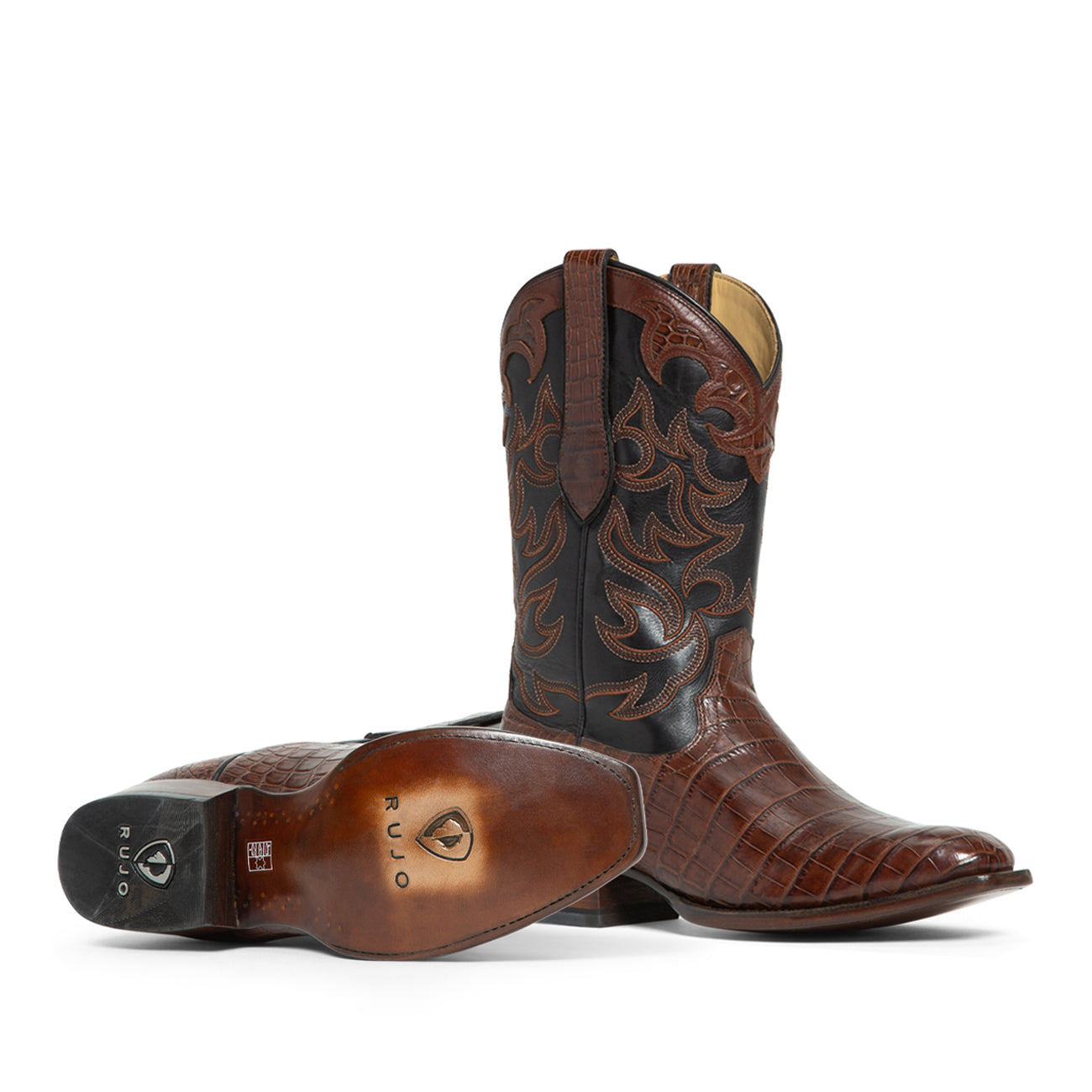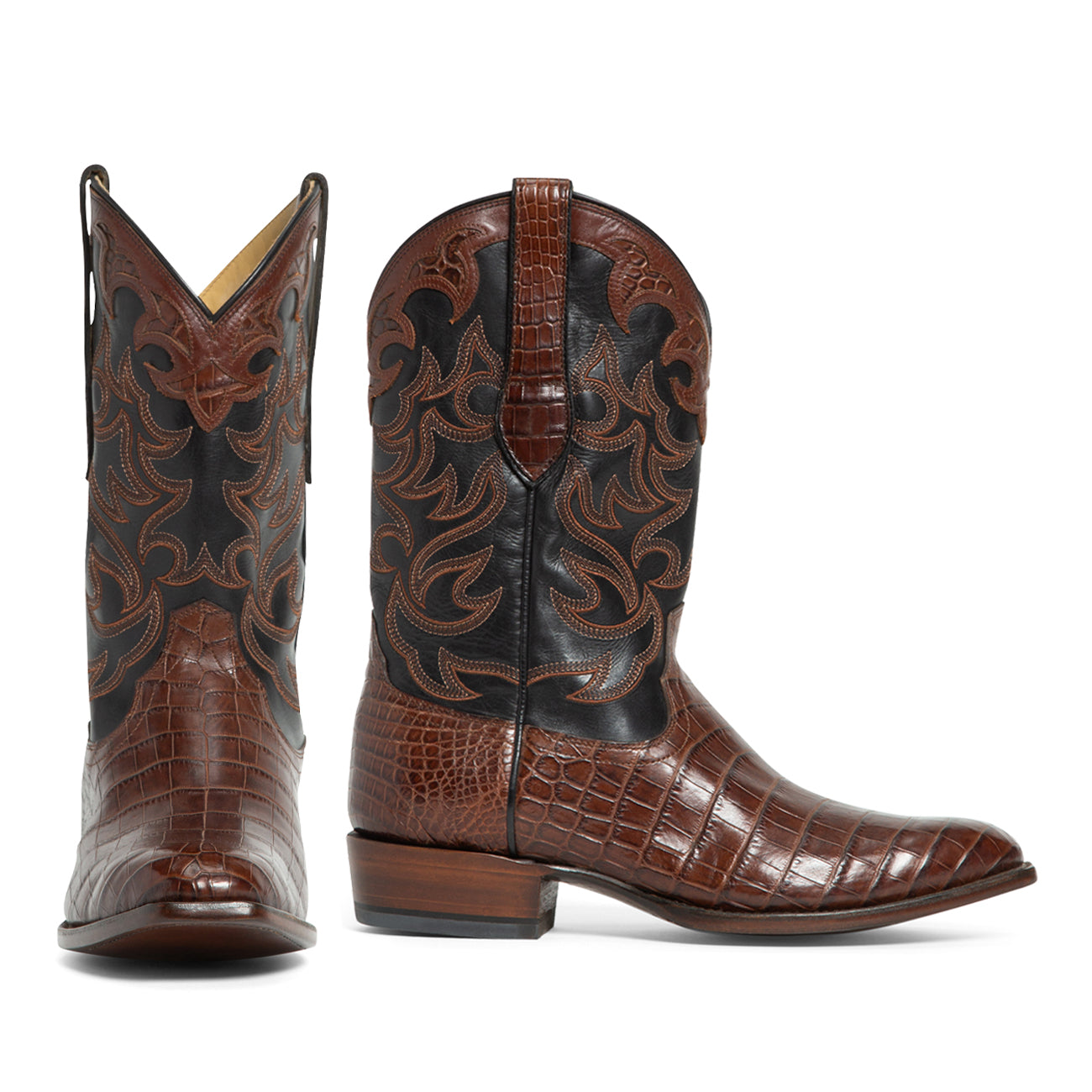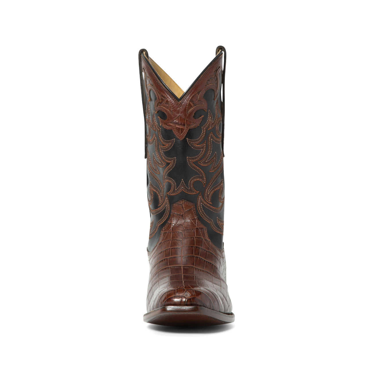 The Leo is a standout Western boot crafted from the richest Nile Crocodile leather, offering a striking blend of bold exotic texture and unmistakable sophistication. Its semi-gloss finish and classic silhouette make The Leo a refined statement piece from every angle. Premium cowhide quarters form the shaft, elevated with an elegant, detailed cording pattern that adds depth and artistry to its design. Matching Nile Crocodile pull straps complete the look, creating a seamless, luxurious profile that boot lovers will instantly appreciate. Built with a single-stitched welt and a durable leather outsole, The Leo delivers exceptional craftsmanship, longevity, and true Western character. From its premium materials to its meticulous construction, this boot embodies the pinnacle of RUJO quality.