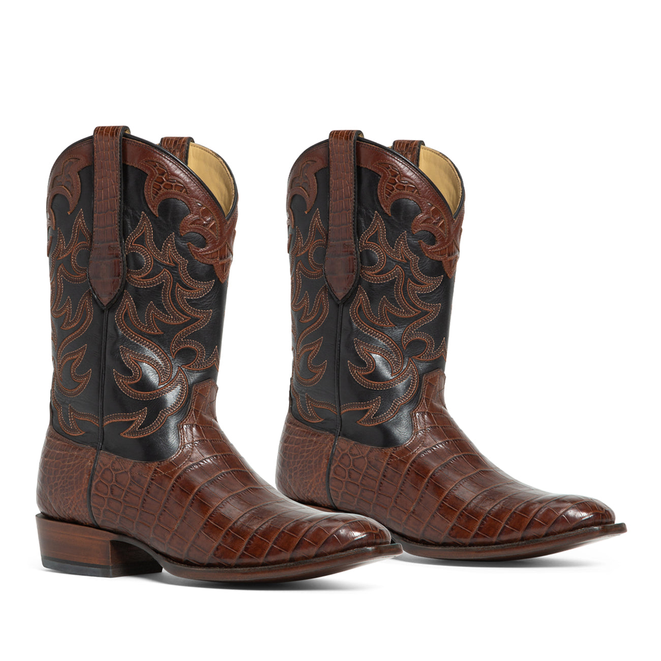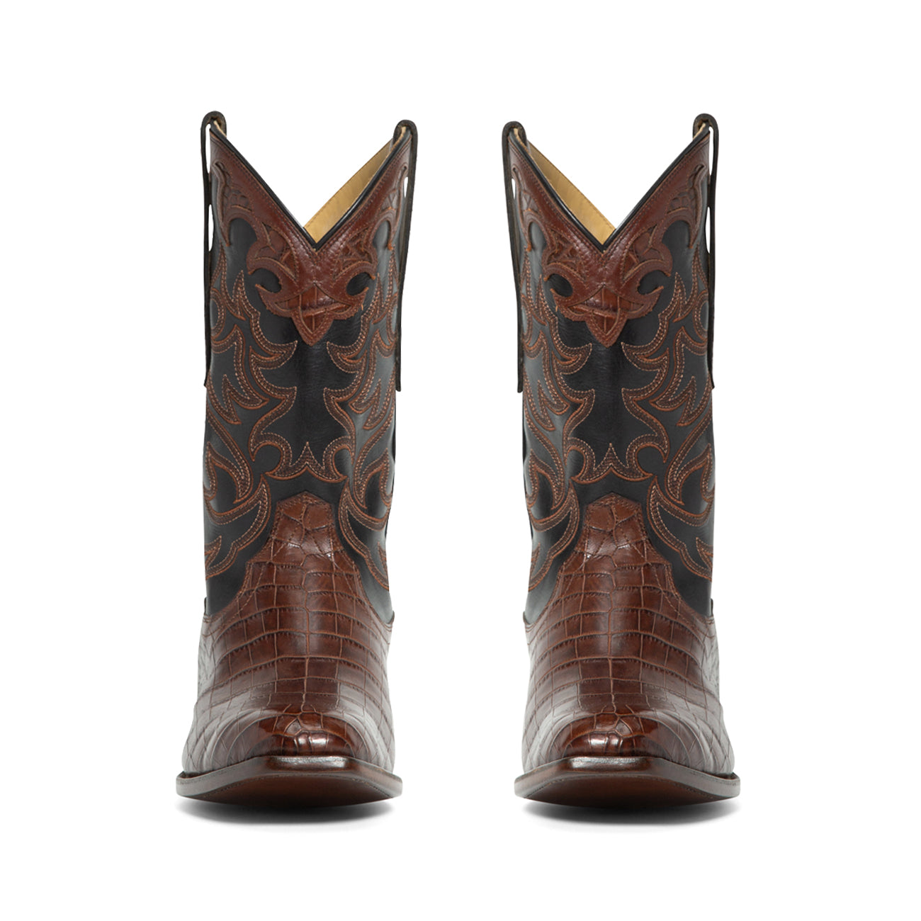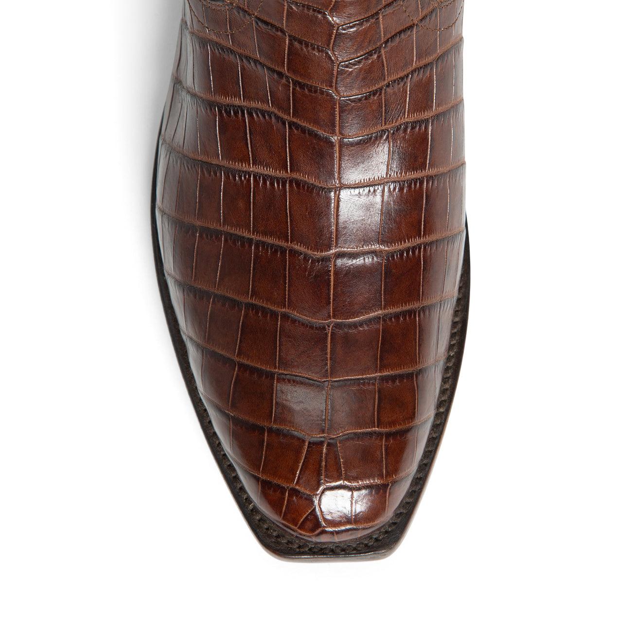 The Leo is a standout Western boot crafted from the richest Nile Crocodile leather, offering a striking blend of bold exotic texture and unmistakable sophistication. Its semi-gloss finish and classic silhouette make The Leo a refined statement piece from every angle. Premium cowhide quarters form the shaft, elevated with an elegant, detailed cording pattern that adds depth and artistry to its design. Matching Nile Crocodile pull straps complete the look, creating a seamless, luxurious profile that boot lovers will instantly appreciate. Built with a single-stitched welt and a durable leather outsole, The Leo delivers exceptional craftsmanship, longevity, and true Western character. From its premium materials to its meticulous construction, this boot embodies the pinnacle of RUJO quality.